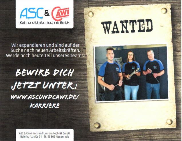 Wir freuen uns auf Ihre Bewerbung, die Sie gerne an Frau Wende (g.wende@asc-cawi.de) senden können.